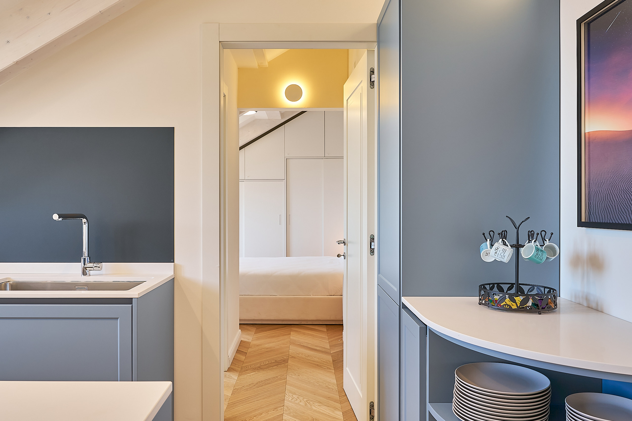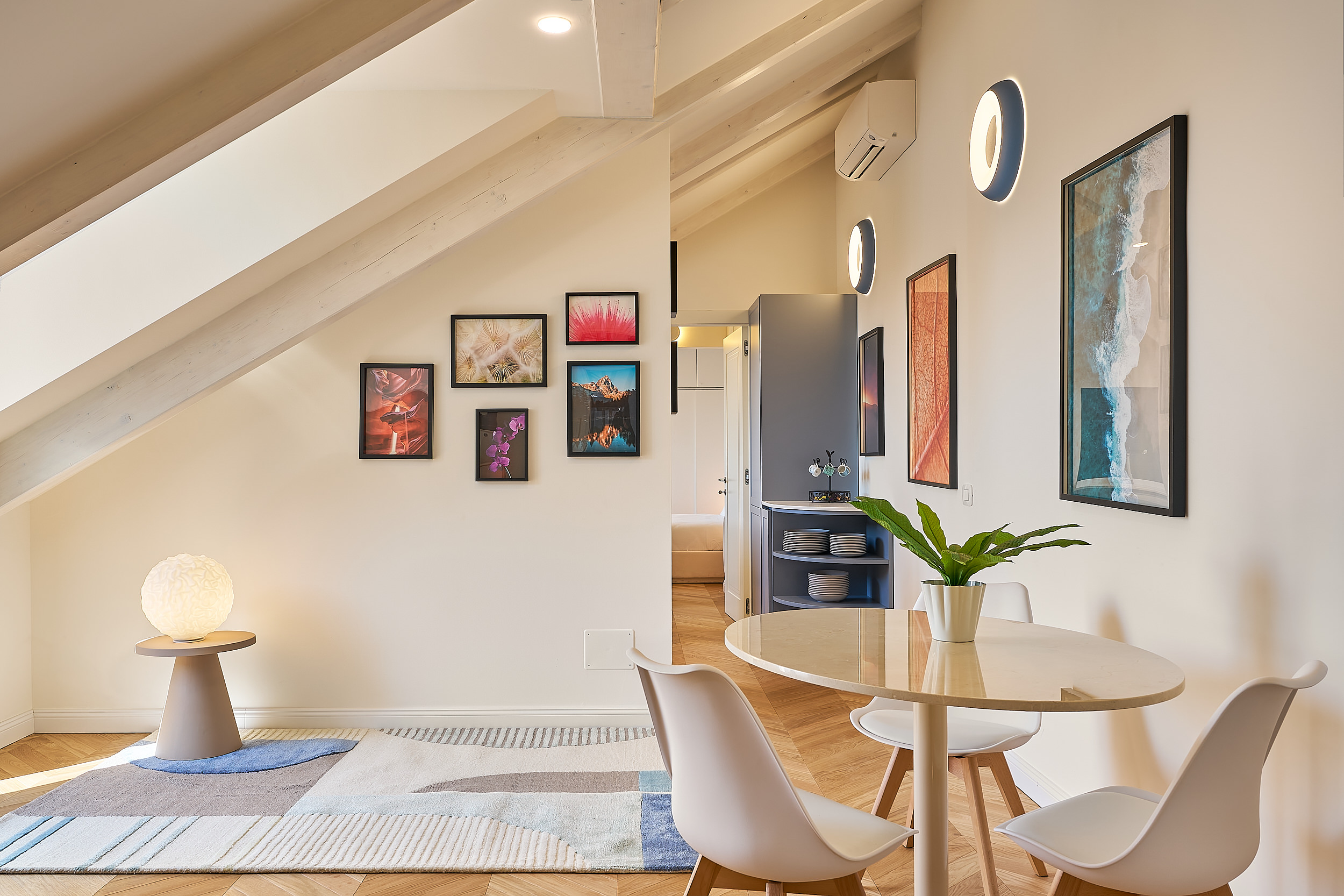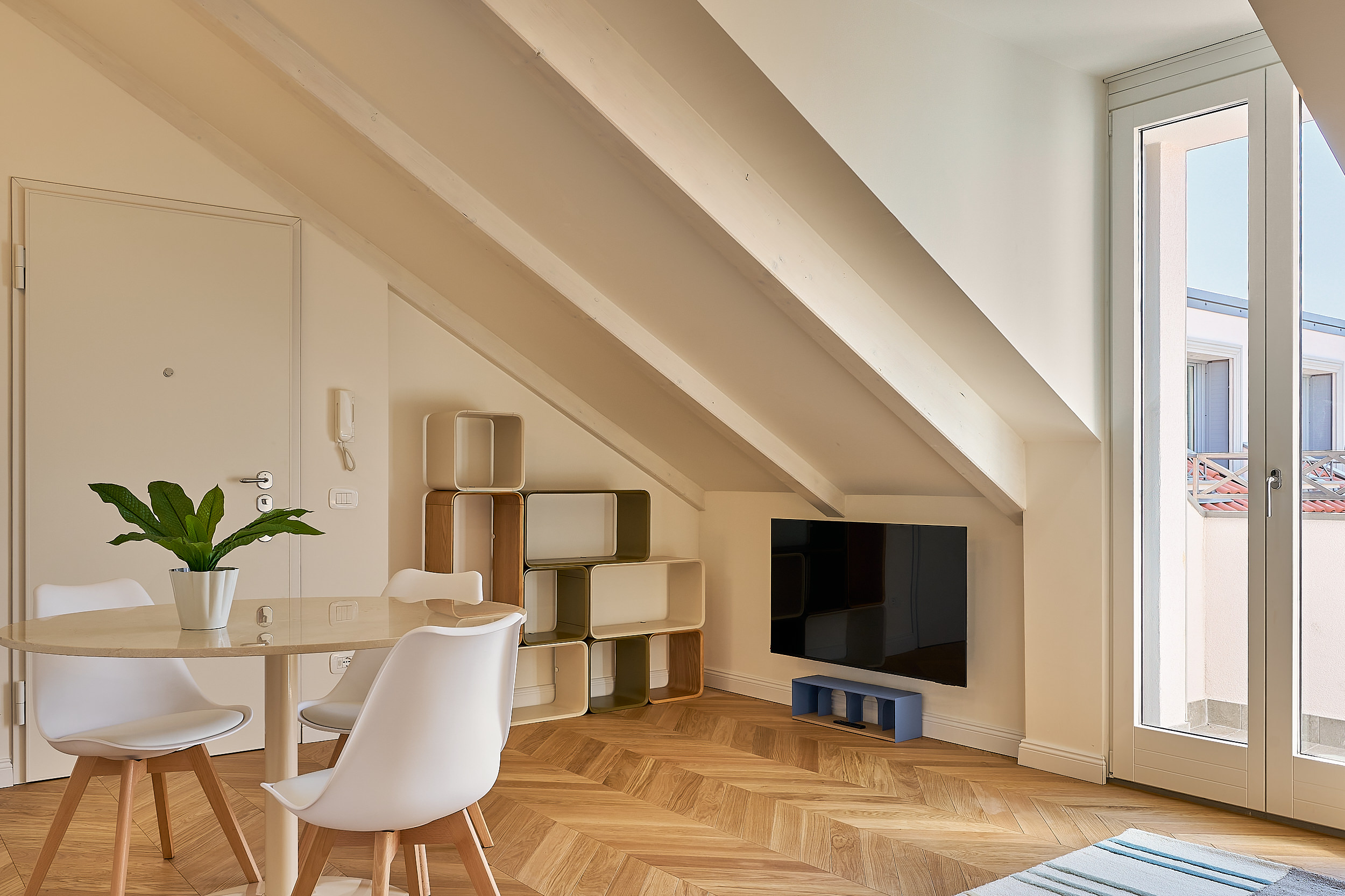 One bedroom attic, city view.